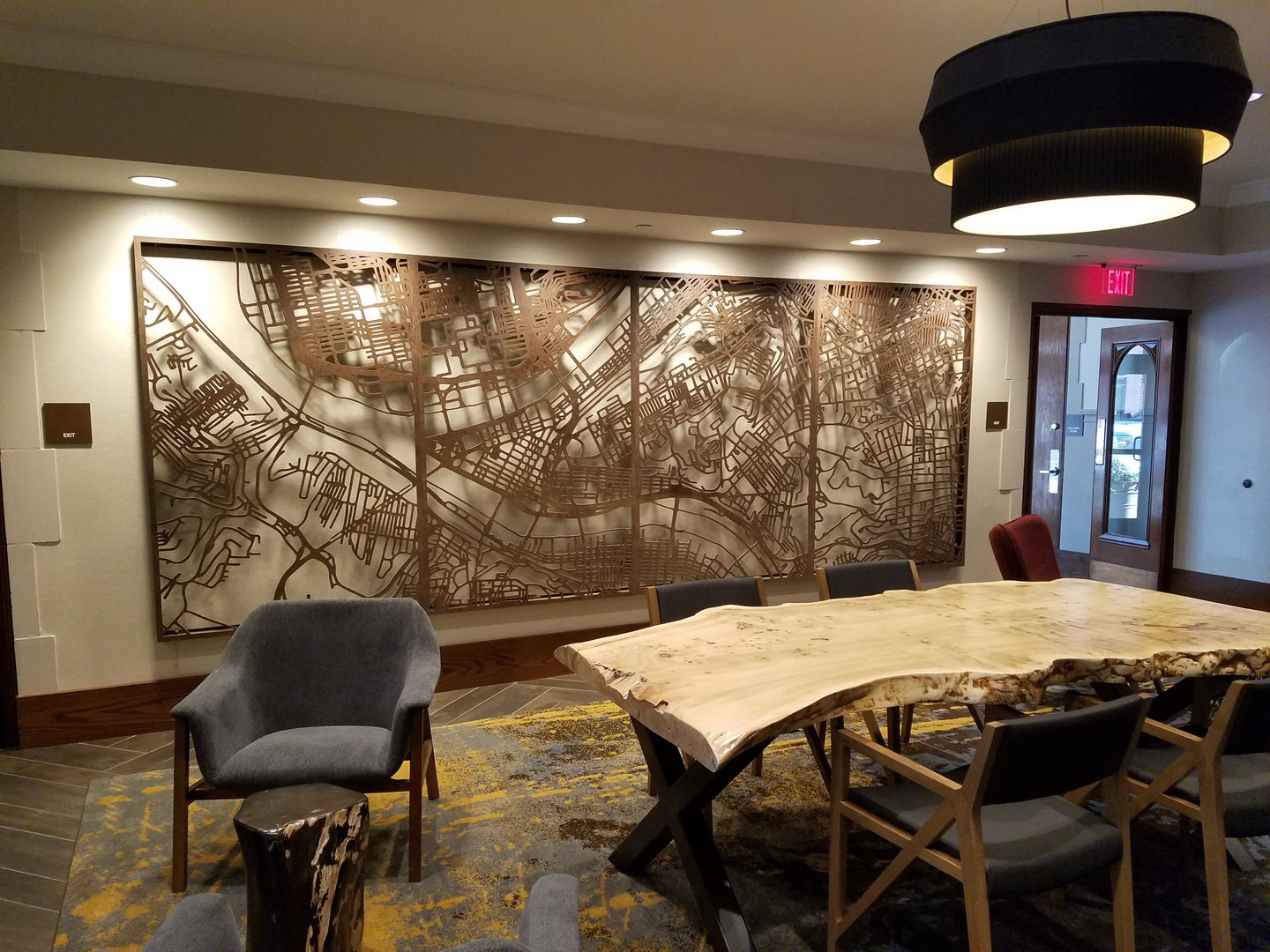 Its in downtown pittsburgh within walking distance of most things the atmosphere in the terrace room is gorgeous the artwork and setting matches that of the hotel.